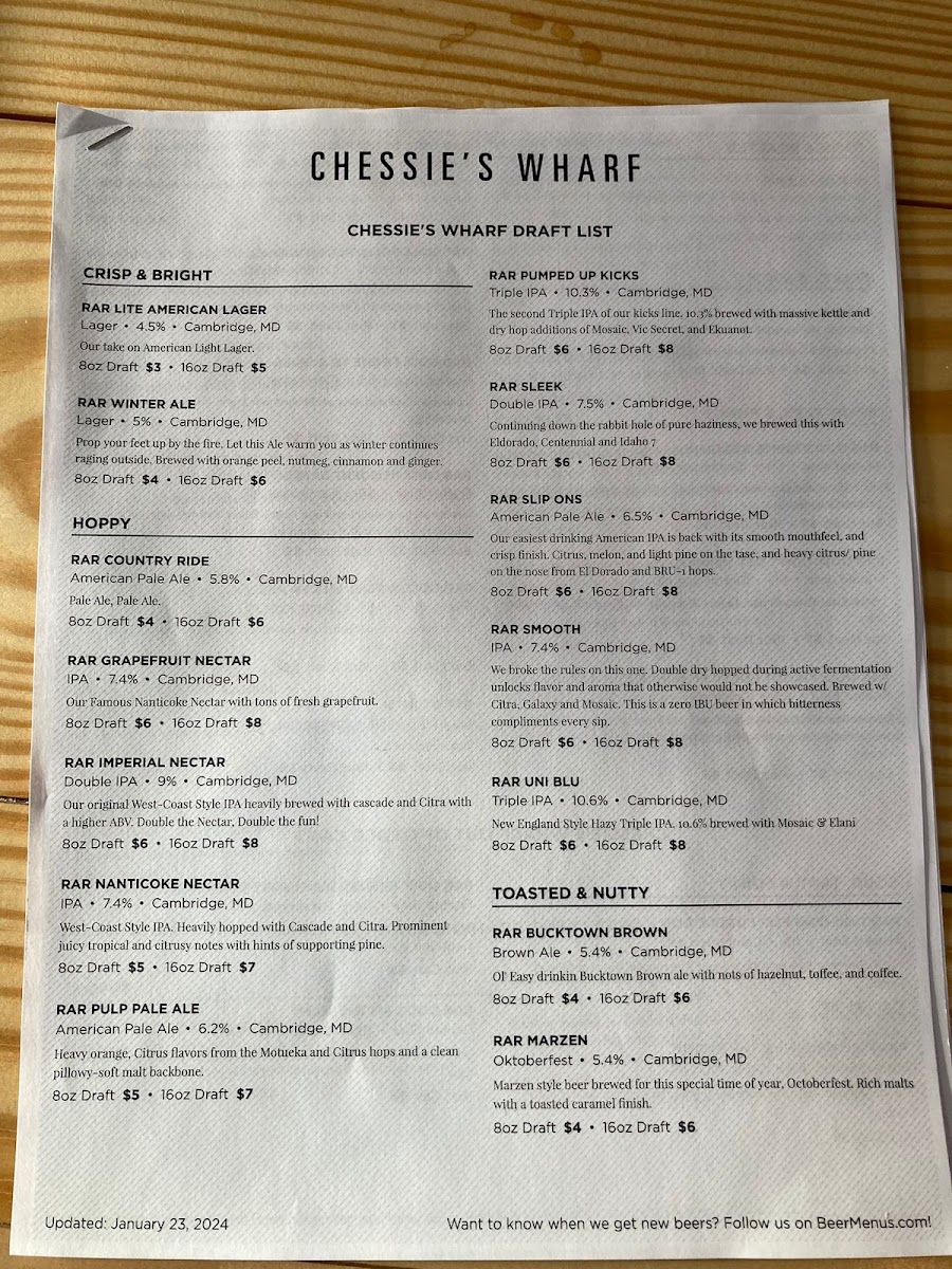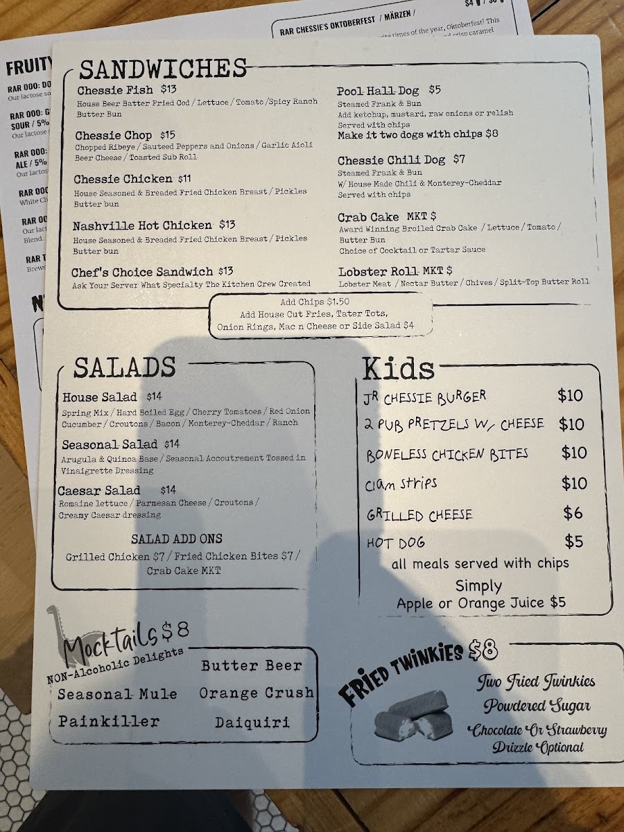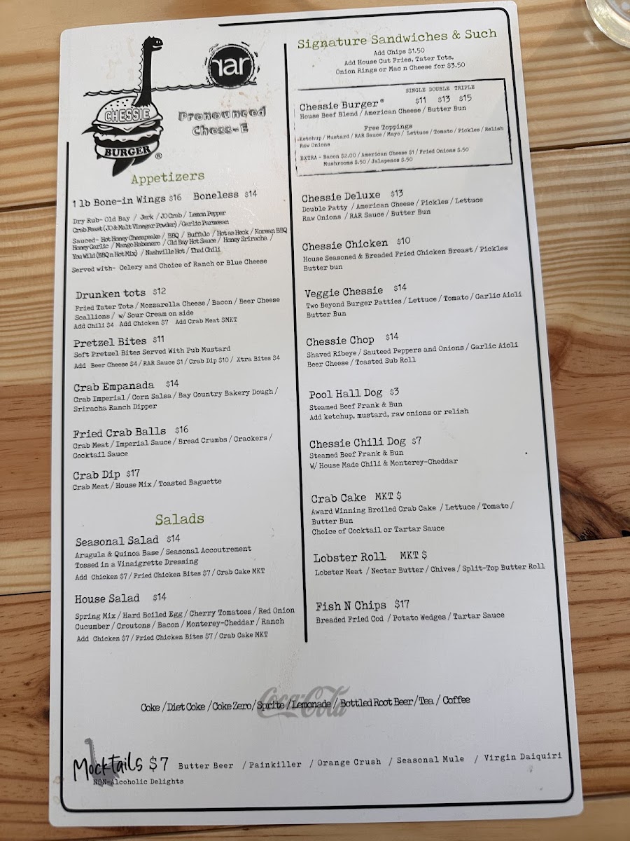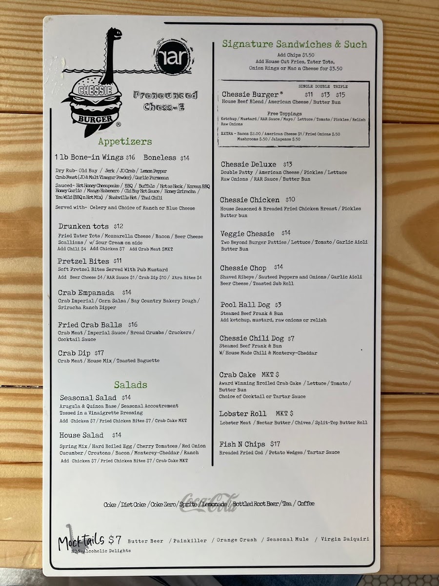 The menu at Chessie’s Wharf offers a relaxed selection of hearty, approachable dishes and comforting drinks, perfectly suited for casual get-togethers or unwinding after a day out. You’ll find classic bar favorites alongside Chesapeake Bay-inspired options, blending familiar flavors with a local touch.